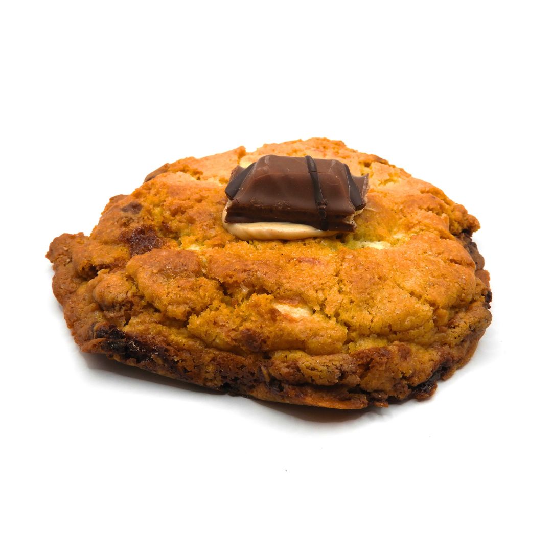 Elaborada con una masa clásica con chips de chocolate blanco y un delicioso relleno de crema tipo Kinder, que aporta un toque dulce y suave en cada bocado.