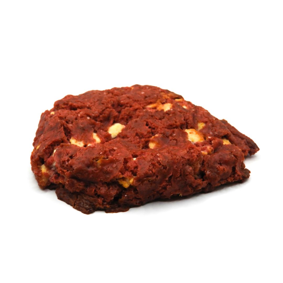 Cookie de masa red velvet con chips de chocolate blanco y un suave relleno de crema de queso, que combina el ligero toque de cacao con la cremosidad característica de este clásico sabor.